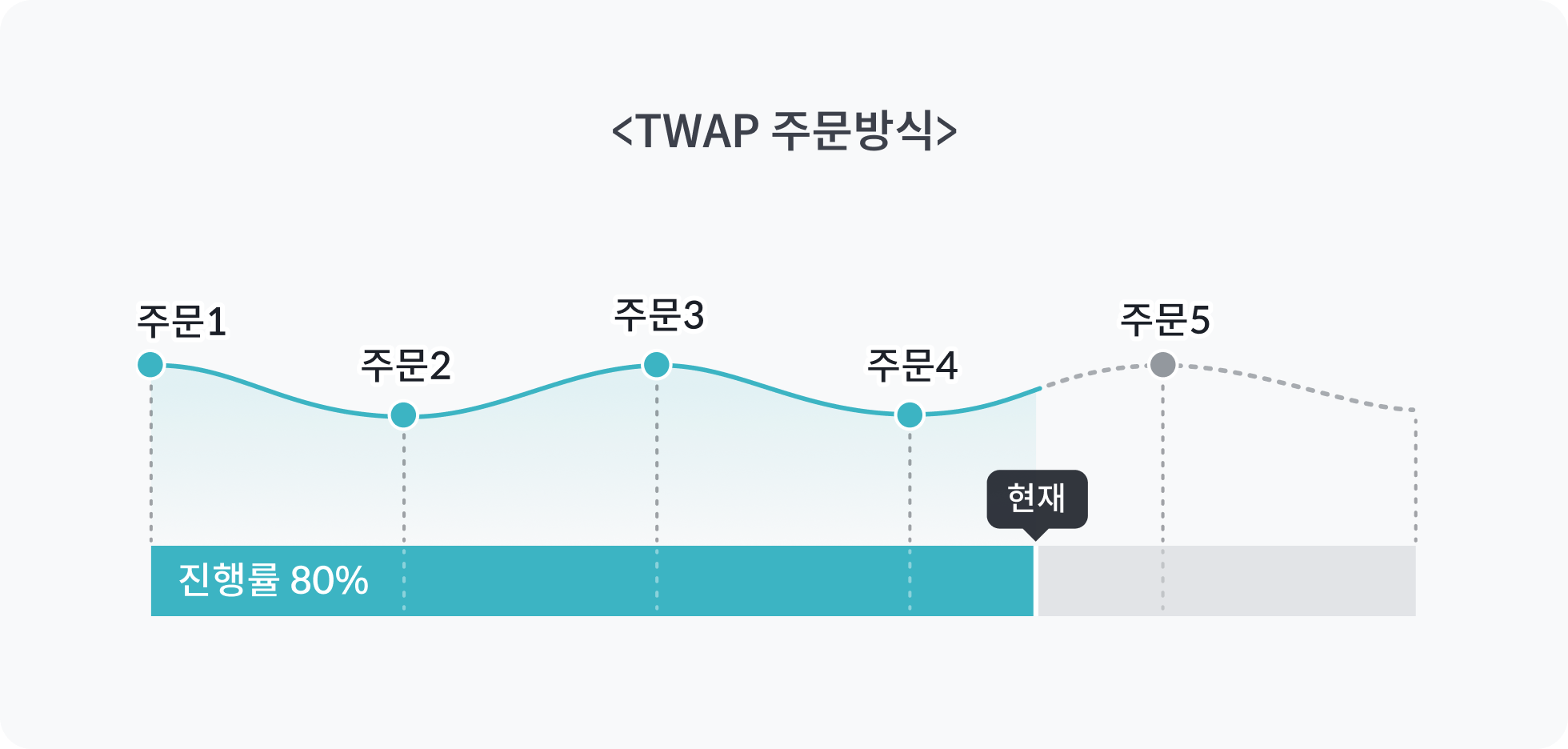 이는 시장가로 주문을 실행하며, 최종 체결 가격을 해당 기간의 평균 가격에 근접하게 유도하는 전략으로 활용하실 수 있습니다.